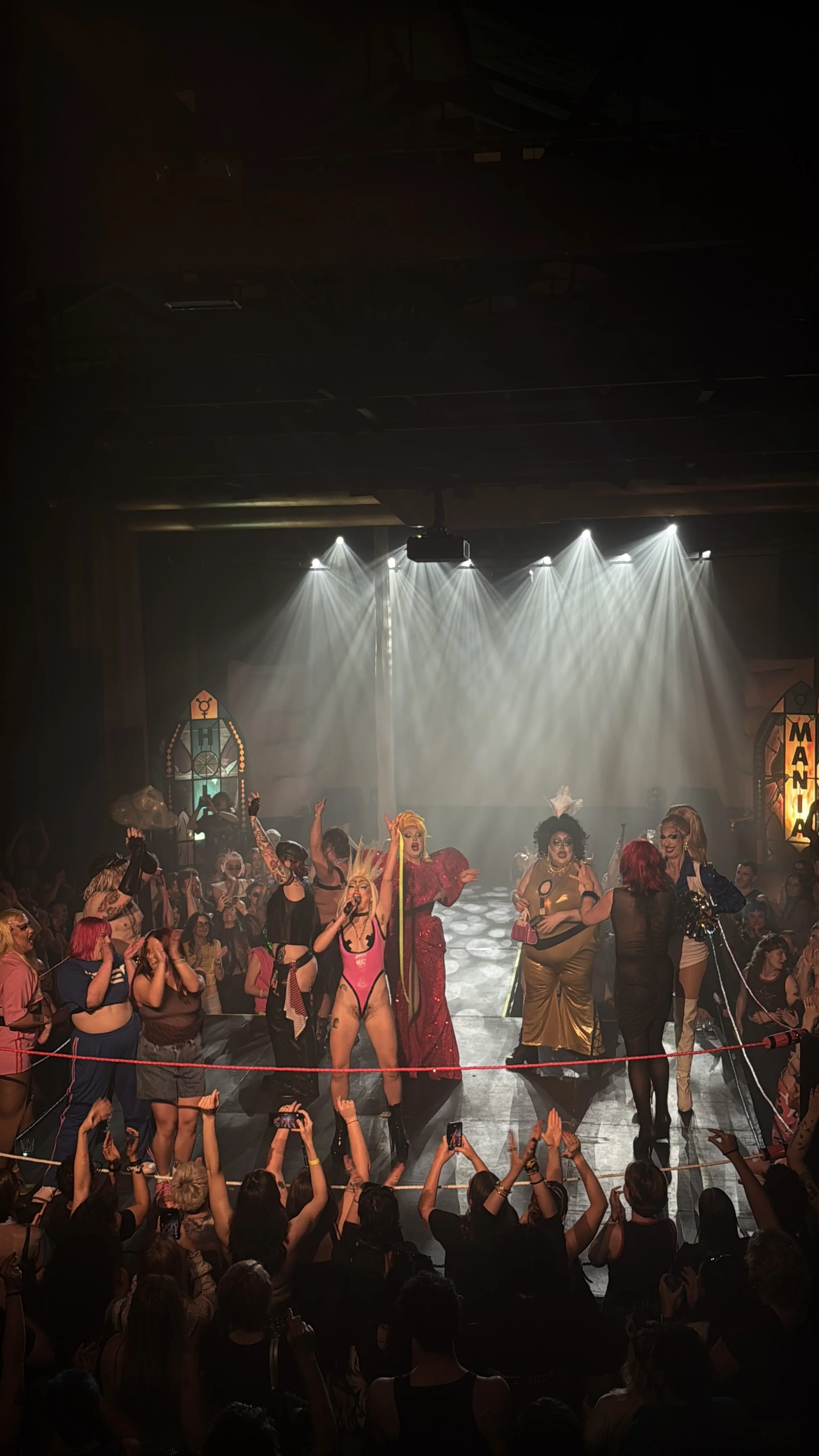She’s turned the whole wrestling ring into her dj booth, surrounded a family of partygoers who have been bonded by the energy that makes Shandy feel like a home for the gays for one,